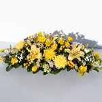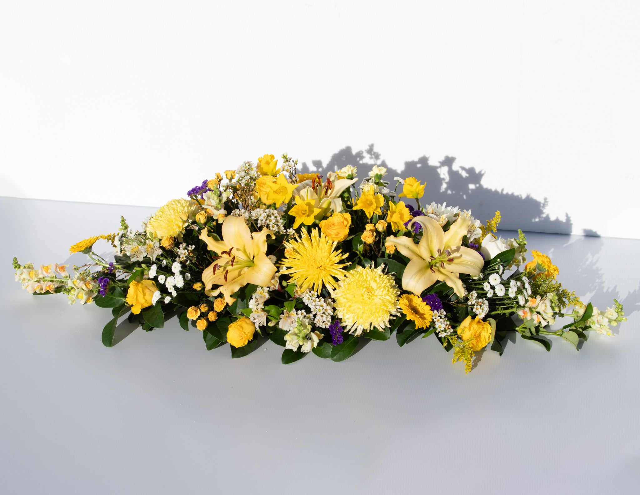 Flowers are seasonal and will vary. Your casket spray will reflect the chosen colours, with specific blooms dependent on availability. We’ll ensure the selection is always beautiful and of the highest quality. If you have a specific flower in mind, please contact us before ordering, as we cannot guarantee any particular flowers.